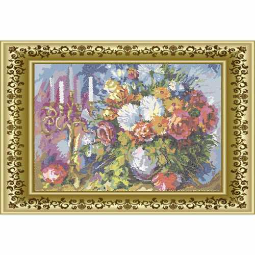 Схема для вышивки бисером с полной круговой зашивкой Квіти і свічі ТМ Княгиня Ольга выполнена на габардине. Каждая схема содержит рекомендуемое количество бисера, а также инструкцию по технике вышивки.