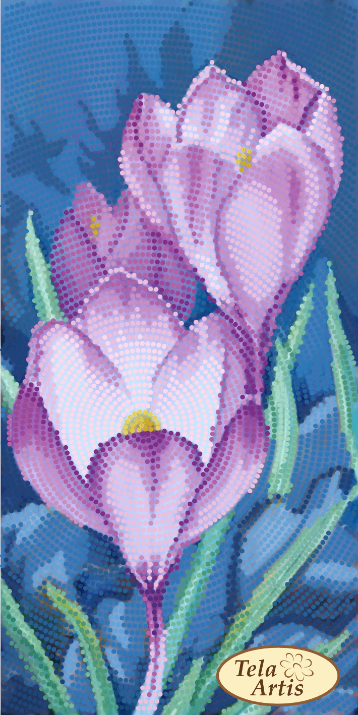 Схема для вышивания бисером Садовые зарисовки. Крокусы выполнена на плотном атласе, продублированном флизелином. Края всех схем Тэла Артис запаяны и не сыпятся в процессе вышивания. На схеме указаны количество и рекомендуемые цвета бисера Preciosa.