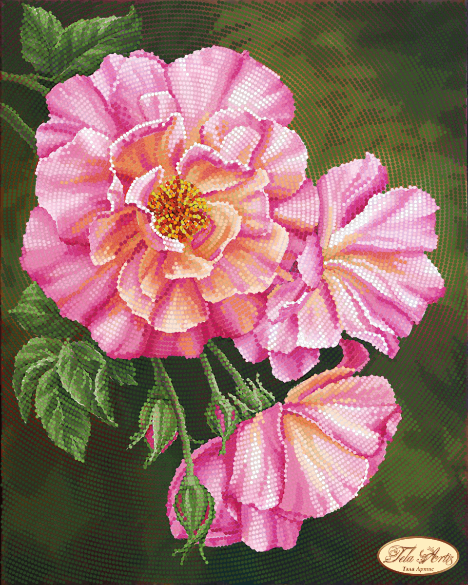 Схема для вышивания бисером Королева сада выполнена на плотном атласе, продублированном флизелином. Края всех схем Тэла Артис запаяны и не сыпятся в процессе вышивания. На схеме указаны количество и рекомендуемые цвета бисера Preciosa.