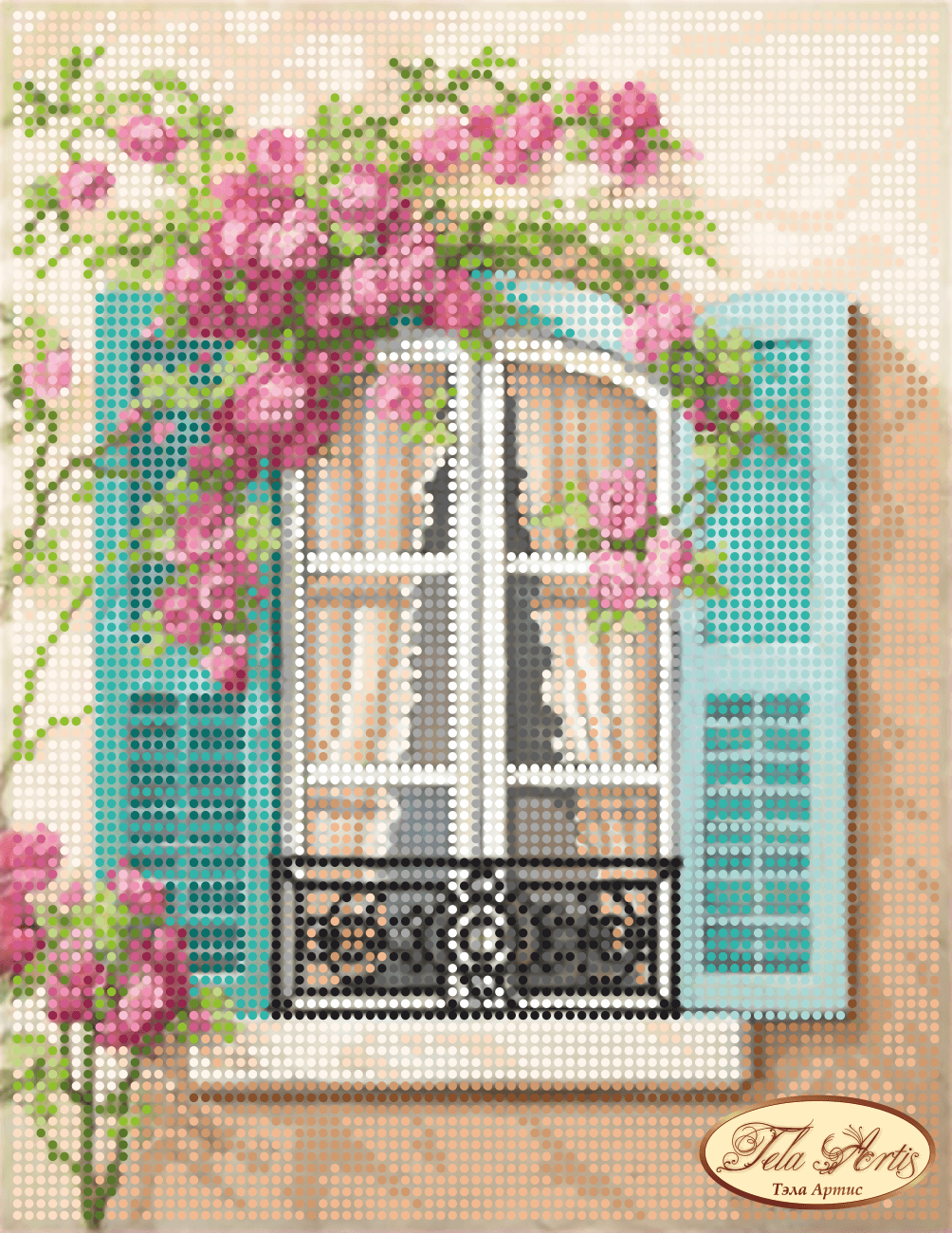 Схема для вышивания бисером Окно в Париж выполнена на плотном атласе, продублированном флизелином. Края всех схем Тэла Артис запаяны и не сыпятся в процессе вышивания. На схеме указаны количество и рекомендуемые цвета бисера Preciosa.