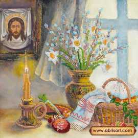 Схема для вышивки бисером Пасхальный сюжет-2 компании Абрис Арт выполнена на плотном художественном холсте. Готовая работа, вышитая на такой схеме будет сочетать в себе мягкие пастельные тона картины, написанной на холсте, с красотой и яркостью бисера.