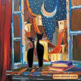 Схема для вышивки бисером на холсте В окошке кошки, 20х20см, AC-471, Абрис Арт