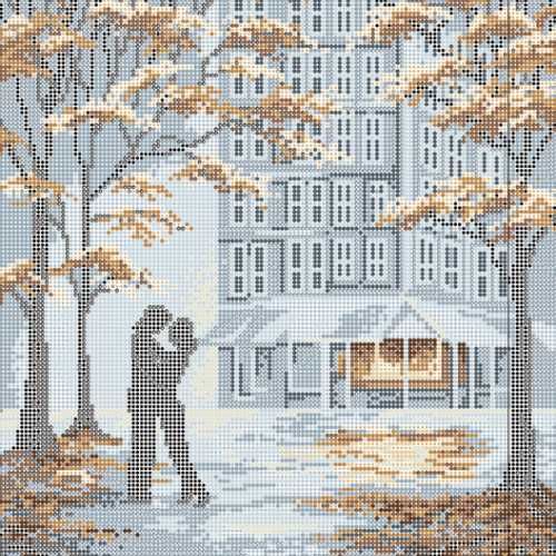 Схема для вышивки бисером на атласной ткани Осенний вечер киевского производителя Повитруля. На схеме указаны цвета и требуемое количество бисера (№10, Preciosa).