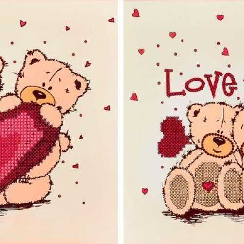 Х/б схема для вышивания бисером на подрамнике Love you, FLS-052D, Две схемы 15*15см, Волшебная страна