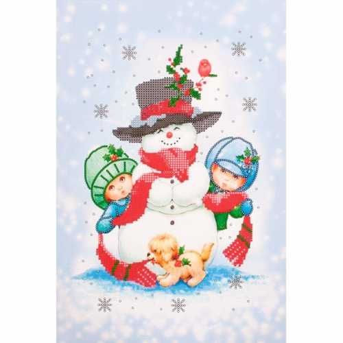 Схема для вышивки бисером на хлопчатобумажном полотне, натянутом на подрамник, Снеговик, FLS-071, 20*30см, Волшебная страна