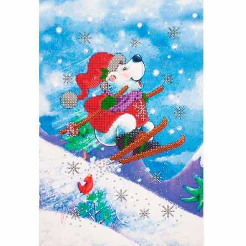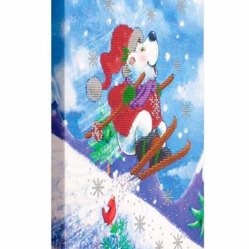 Схема для вышивки бисером на хлопчатобумажном полотне, натянутом на подрамник, Новогодний мишка - 3, FLS-074, 20*30см, Волшебная страна