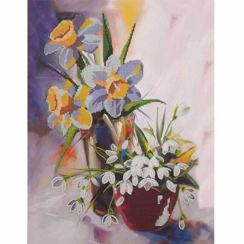 Схема для вышивки бисером на хлопчатобумажном полотне, натянутом на подрамник, Нарциссы, FLS-080, 30*40см, Волшебная страна