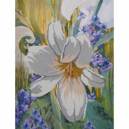 Схема для вышивки бисером на хлопчатобумажном полотне, натянутом на подрамник, Белая лилия содержит полотно 30*40см, инструкцию и крепежи.