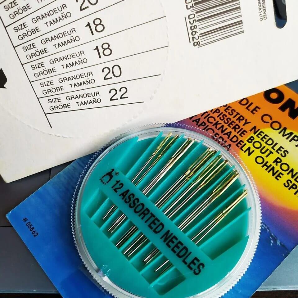 Набор ассорти из двенадцати иголок разных размеров для вышивания.